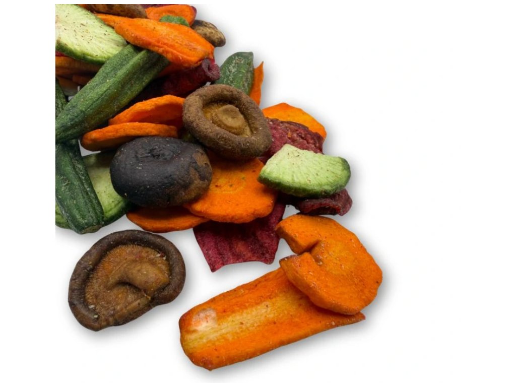 Díky vakuovému smažení při nízké teplotě zůstávají všechny suroviny chutné, krásně barevné a bez zbytečné mastnoty. Ideální na mlsání u filmu, jako topping na asijské nudle nebo jen tak do krabičky na svačinu do práce nebo na výlet.