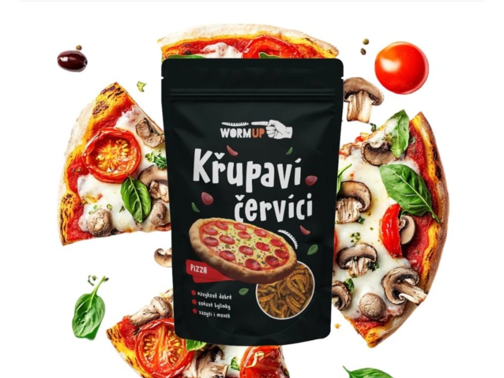 Sušené larvy potemníka moučného (Tenebrio molitor), sůl, sušená zelenina: česnek, cibule, paprika, tymián, oregano, bazalka, rozmarýn, aroma.