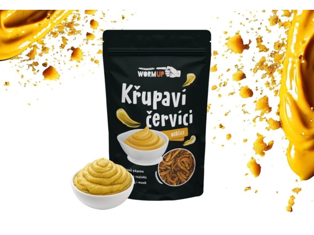 Sušené larvy potemníka moučného (Tenebrio molitor), dextróza, sůl, přírodní aroma, hořčičné semínko, sušená zelenina: česnek, kurkuma, chilli extrakt, aroma.